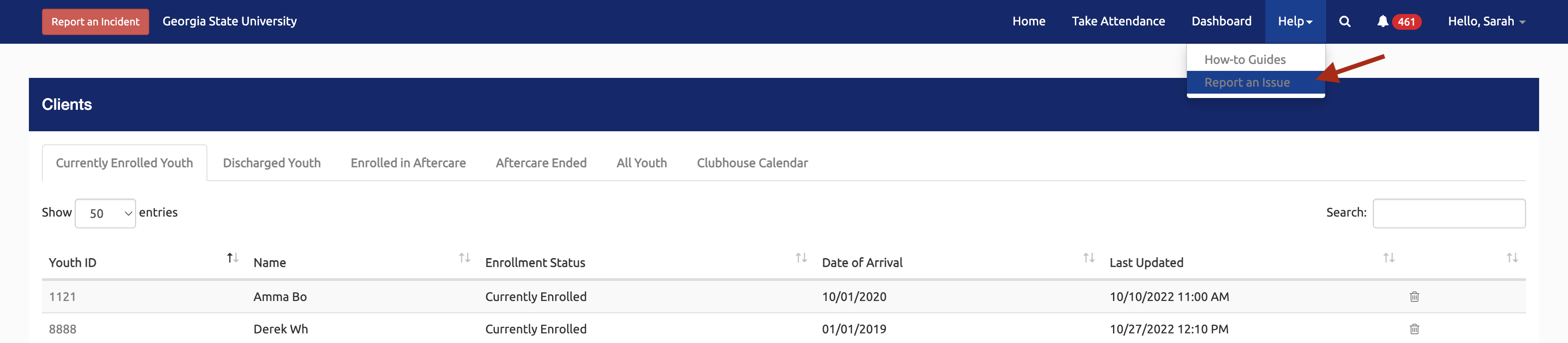 - Select the Report an Issue link in the dropdown menu.