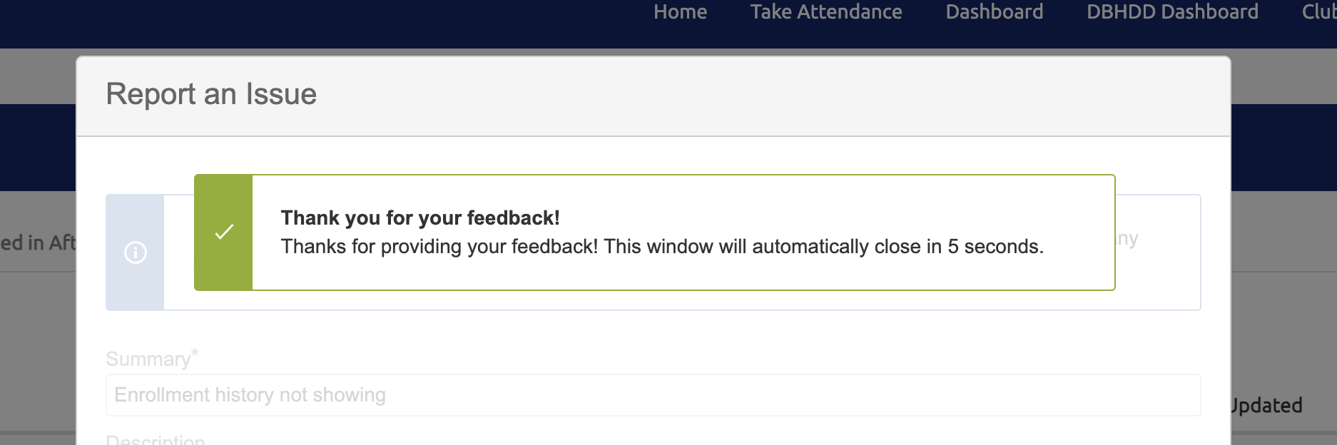 When successfully submitted, a "Thank you for your feedback!" message will appear.
